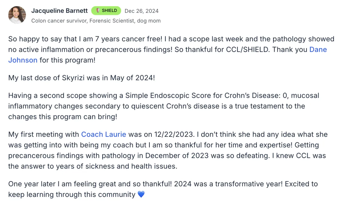 I am on mission to help create the healing home and the IBD education system I never had. To date, we’ve guided 2000+ to reverse symptoms, have alternatives to surgery and gain massive results naturally.